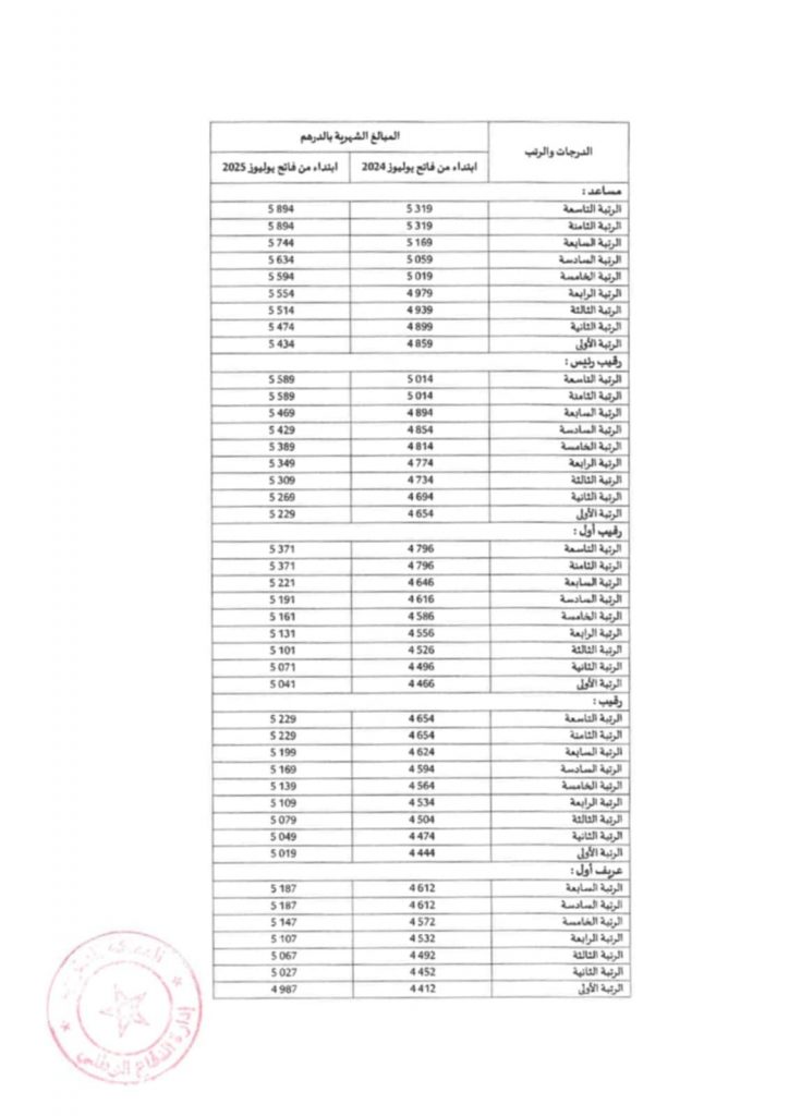 وينص المرسوم الذي صادقت عليه الحكومة، على صرف قسط أول من هذه الزيادة بواقع 500 درهم صافية في الشهر انطلاقا من فاتح يوليوز الجاري، و500 درهم أخرى انطلاقا من فاتح يوليوز 2025.