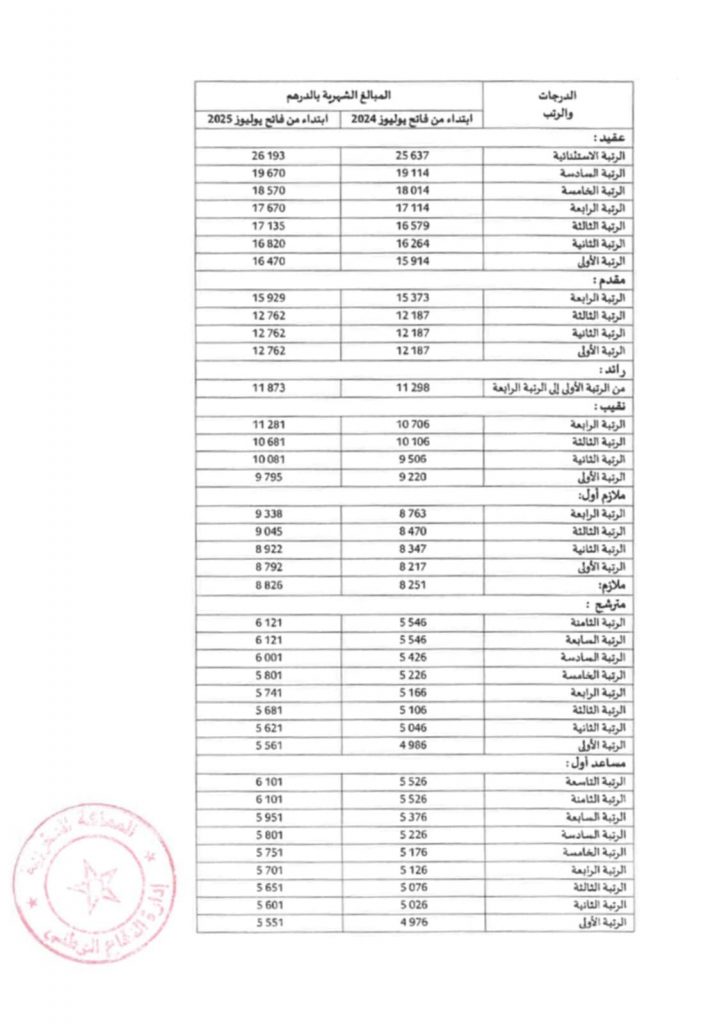 قررت حكومة أخنوش ضخ زيادات جديدة في أجور وتعويضات موظفي الأمن الوطني والقوات المساعدة والوقاية المدنية على غرار باقي موظفي القطاعات العمومية، بحسب ما كشفت عنه الوزارة المنتدبة لدى رئيس الحكومة المكلفة بالانتقال الرقمي وإصلاح الإدارة.