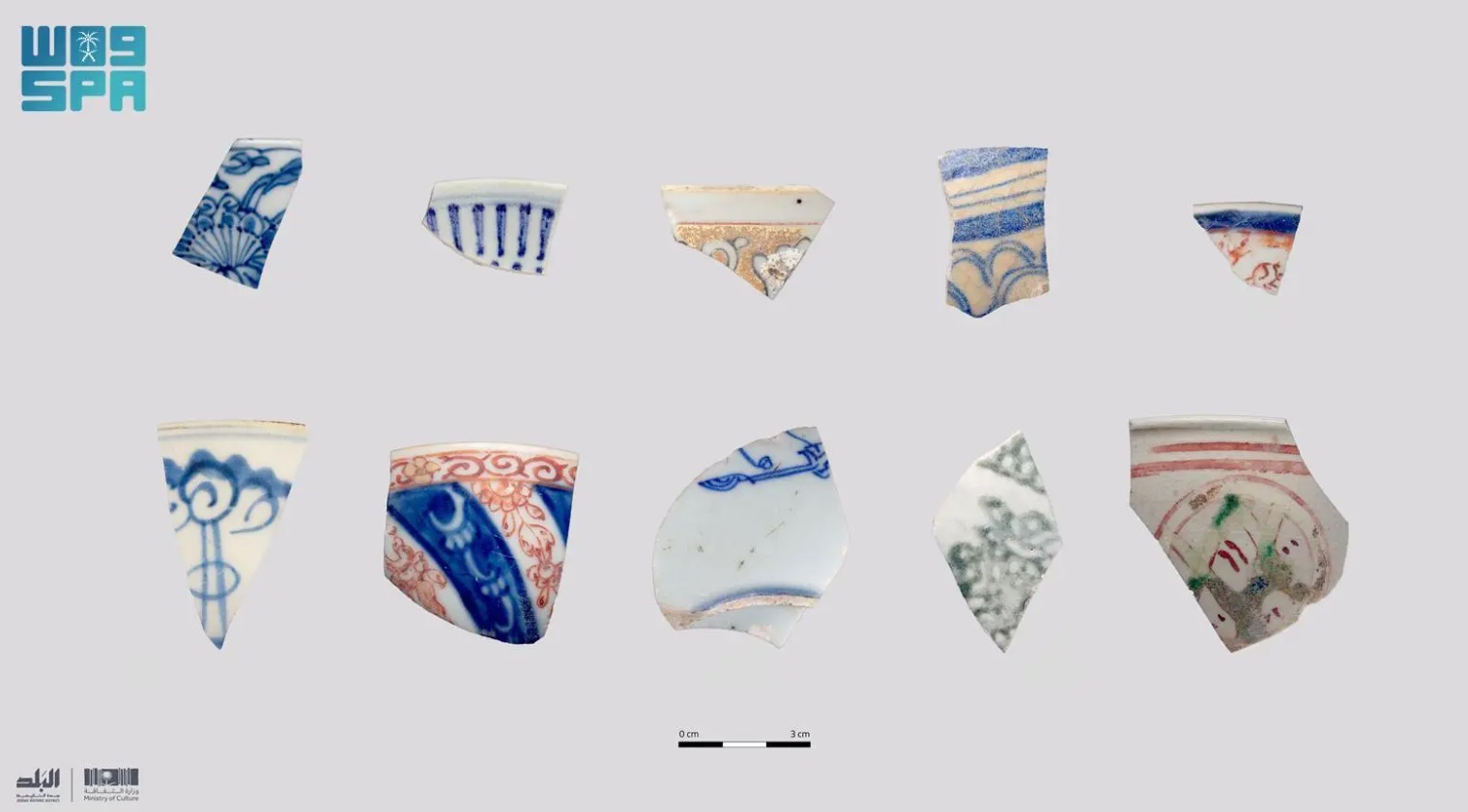 وأسفرت أعمال المسح والتنقيب الأثري التي بدأت في شهر ربيع الأول 1442هجري الموافق نونبر 2020، عن اكتشاف 11405 مواد خزفية يبلغ مجموع أوزانها 293 كغم، كما عُثر على 11360 مادة من عظام الحيوانات يبلغ مجموع أوزانها 107 كغم، إضافة إلى 1730 مادة صدفية بوزن 32 كغم، إلى جانب 685 من مواد البناء يبلغ مجموع أوزانها 87 كغم، و191 مادة زجاجية بلغ مجموع أوزانها 5 كغم، فيما وصل عدد المواد المعدنية إلى 72 قطعة بوزن 7 كغم، حيث بلغ إجمالي ما تم العثور عليه 531 كغم، لتشكل قيمة مهمة للمكتشفات الأثرية الوطنية، وفق “واس”.