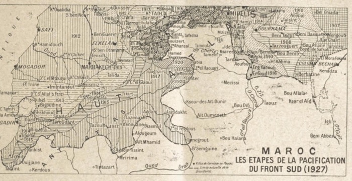في الصحراء، حيث لا تبقى أدنى مفرزة من القوات إلا بموارد تأتيها من الخلف، أي من المناطق الخصبة في الشمال، فإن جميع المسائل السياسية والعسكرية، فضلا عن إعادة احتلال تافيلالت، لتأمين أبواب كولومب-بشار، وعودة مشكلة النقل والجولان، ستبقى بدون حل جيد ما لم تكن هناك سياسة جذب، ولا استعراض للقوة، ولا سلام ولا أمن، كما قال الجنرال في مقابلة أجراها مع إحدى الصحف الجزائرية عام 1918 بمناسبة الأحداث المؤسفة التي وقعت في تافيلالت.