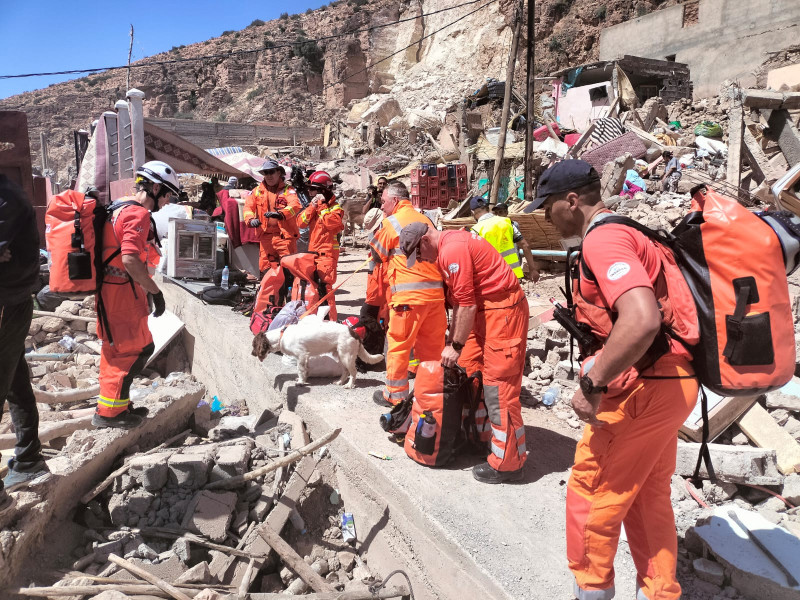 ومنذ اليوم الثاني من وقوع الزلزال في الحوز، باشرت فرق البحث والإنقاذ الإسبانية والإنجليزية عملها إلى جانب فرق التدخل المغربية والقطرية، إذ حلّت بالإقليم بعتاد ومعدات وسيارات وبدأت تتنقل إلى الدواوير المتضررة بتنسيق مع السلطات المغربية.