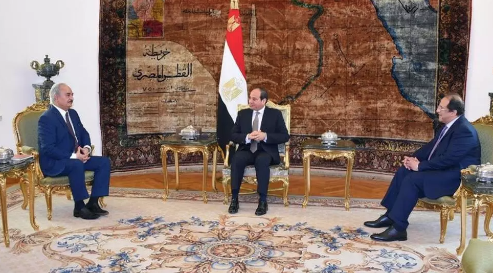 جاء ذلك خلال استقبال الرئيس المصري اليوم بقصر الاتحادية عقيلة صالح، وخليفة حفتر، وذلك بحضور الفريق أول محمد زكي وزير الدفاع، وعباس كامل رئيس المخابرات العامة، والدكتور علي عبد العال رئيس مجلس النواب، وسامح شكري وزير الخارجية، حسبما أفاد المتحدث الرسمي باسم الرئاسة المصرية بسام راضي.