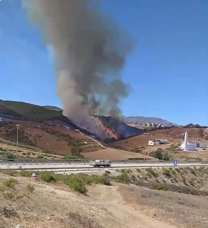 السيطرة على حريق بجانب مدينة الفنيدق (صور)