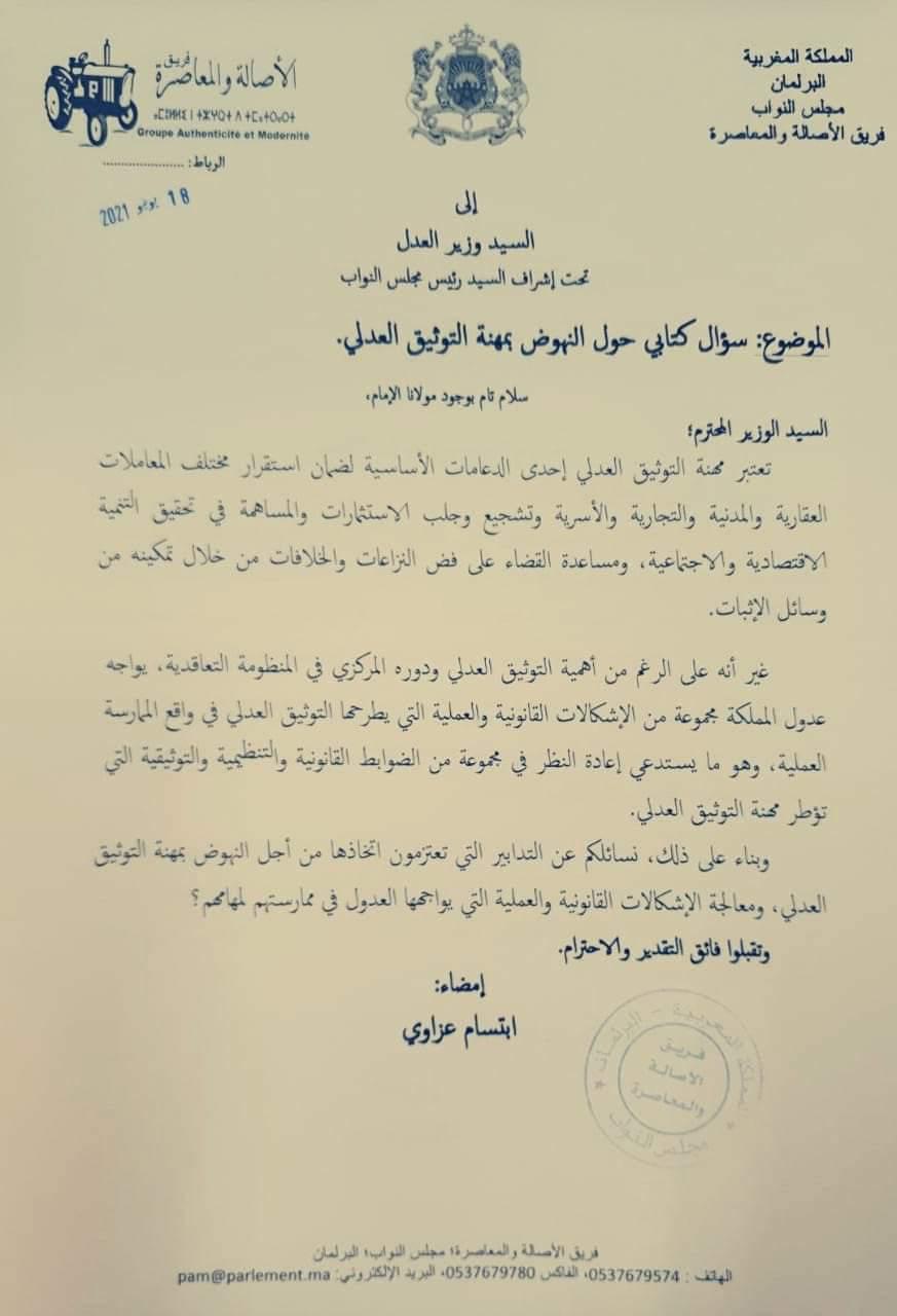 وتساءلت البرلمانية في سؤالها الذي توصل موقع “هوية بريس” بنظيره، عن الاجراءات التي تعتزم الوزارة اتخاذها من أجل النهوض بمهنة التوثيق العدلي ومعاجلة الاشكالات القانونية والعملية التي يواجهها عدول المملكة.