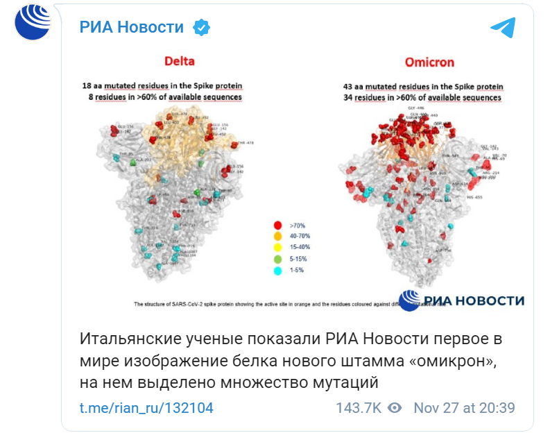 وبحسب ممثل المؤسسة الطبية، هذه “صورة” بالمعنى الفضفاض، حيث أنه قد تمت محاكاتها في المختبر، وتُظهر الصورة بروتينات السلالتين (دلتا وأوميكرون)، ويتم تمييز المناطق الأكثر تغيرًا باللون الأحمر.