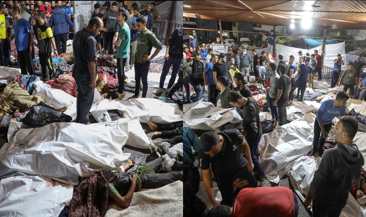 وانطلقت مسيرة أمام مقرّ المقاطعة في الخليل، تنديداً بمجزرة مستشفى المعمداني في غزة.