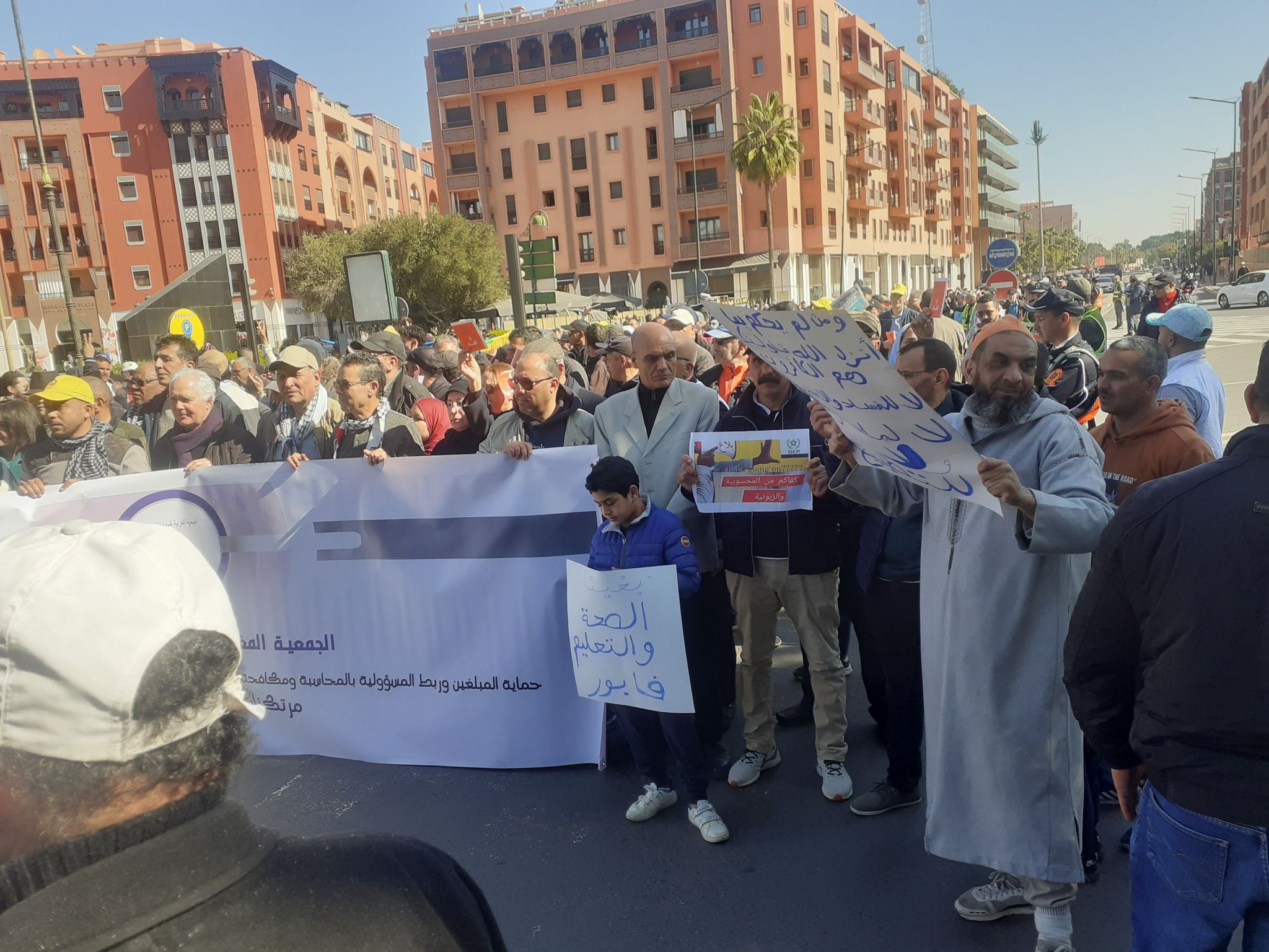 انطلقت المسيرة من باب دكالة باتجاه شارع محمد الخامس، بحضور أكثر من 400 مشارك، بينهم متضررون من زلزال الأطلس الكبير.