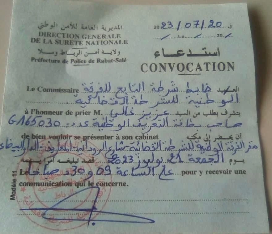 الفرقة الوطنية للشرطة القضائية بالدار البيضاء تستدعي عزيز غالي (وثيقة)