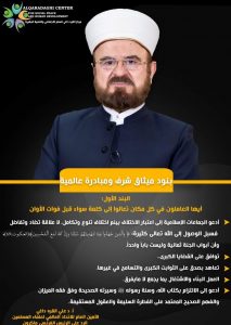 وعنونت المبادرة العالمي للشيخ قره داغي، البند الأول، بعبارة “أيها العاملون في كل مكان تعالوا إلى كلمة سواء قبل فوت الأوان”.