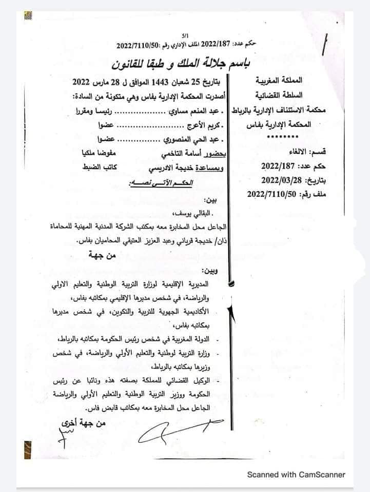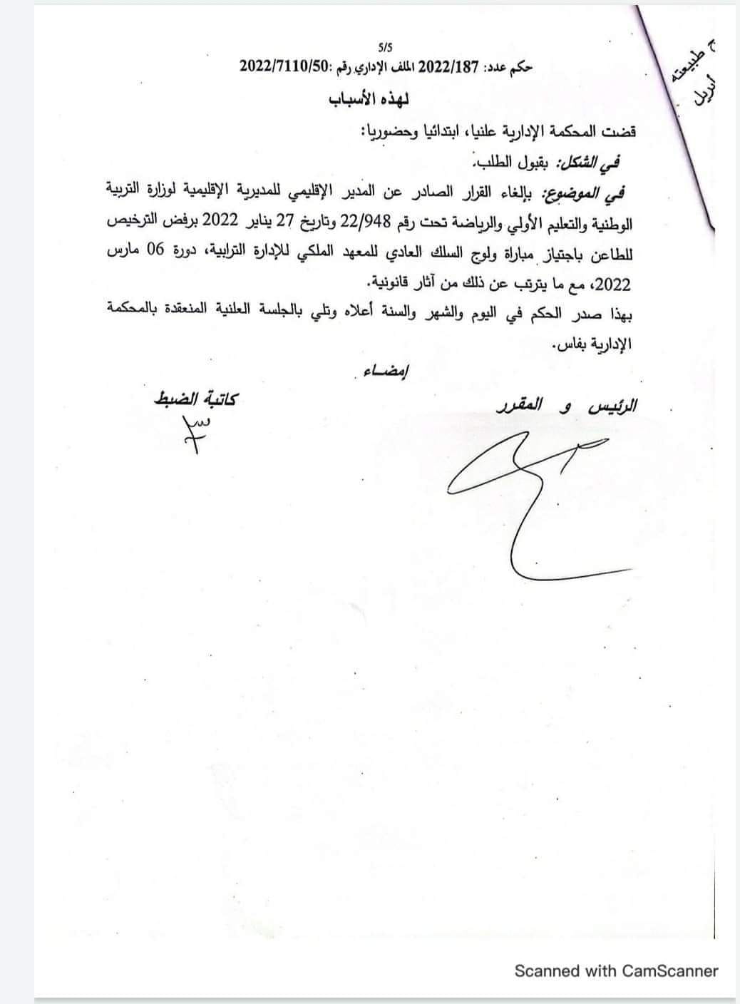القضاء ينصف “أستاذا متعاقدا” ضد مديرية فاس بشأن عدم منح ترخيص لاجتياز مباراة (+وثيقة)