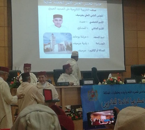 ثم أعقبه فضيلة الدكتور محمد يسف الأمين العام للمجلس العلمي الذي الذي أشار في كلمته لاهتمام جلالة الملك محمد السادس -نصره الله- بخطباء الجمعة وتكريمهم وتتويج خطبهم إن على المستوى الوطني أو على المستوى الجهوي.