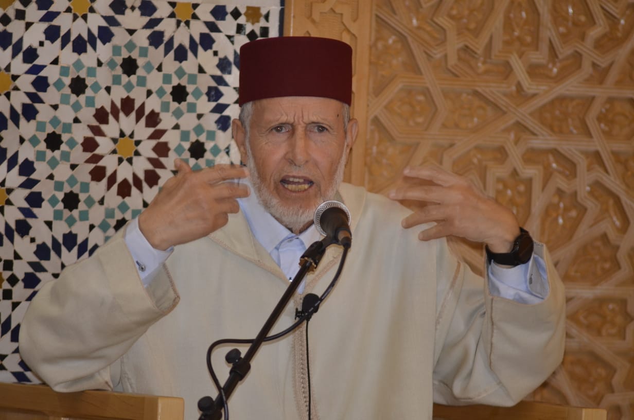 فبعد قراءة الحزب الراتب تفضل السيد المحاضر بكلمة قدم فيها بداية تحية إجلال وإكبار مؤسسي هذا المسجد والقائمين على شؤونه. ثم تفضل بالترحم على أموات ضحايا حادثة زلزال الحوز وتقديم المواساة للأحياء منهم معتبرا أن حدث الزلزال يعتبر ابتلاء وفتنة للعباد. فالله يبتلي الخلق بالخير كما يبتليهم بالشر. “ونبلوكم بالشر والخير فتنة” فوقف مع ذلكم التضامن الواسع والهبة المجتمعية التي كانت انطلاقتها الفعلية بعد صلاة الغائب التي أمر بإقامتها أمير المومنين حفظه الله. حيث اصطف فيها المسلمون في أزيد من خمسين ألف مسجد بالمغرب وخارج المغرب كذلك معلنين مآزرتهم لإخوانهم المفجوعين هناك. معتبرا أن سر ذلك التضامن هو التماسك الأسري والعائلي والقبلي الضارب جذوره في أعماق التاريخ المغربي المتجذر فيه. وأن الصلاة أفضل بلسم شافي لقلوب ونفوس الناجين منهم ممن يعاني صدمات نفسية.