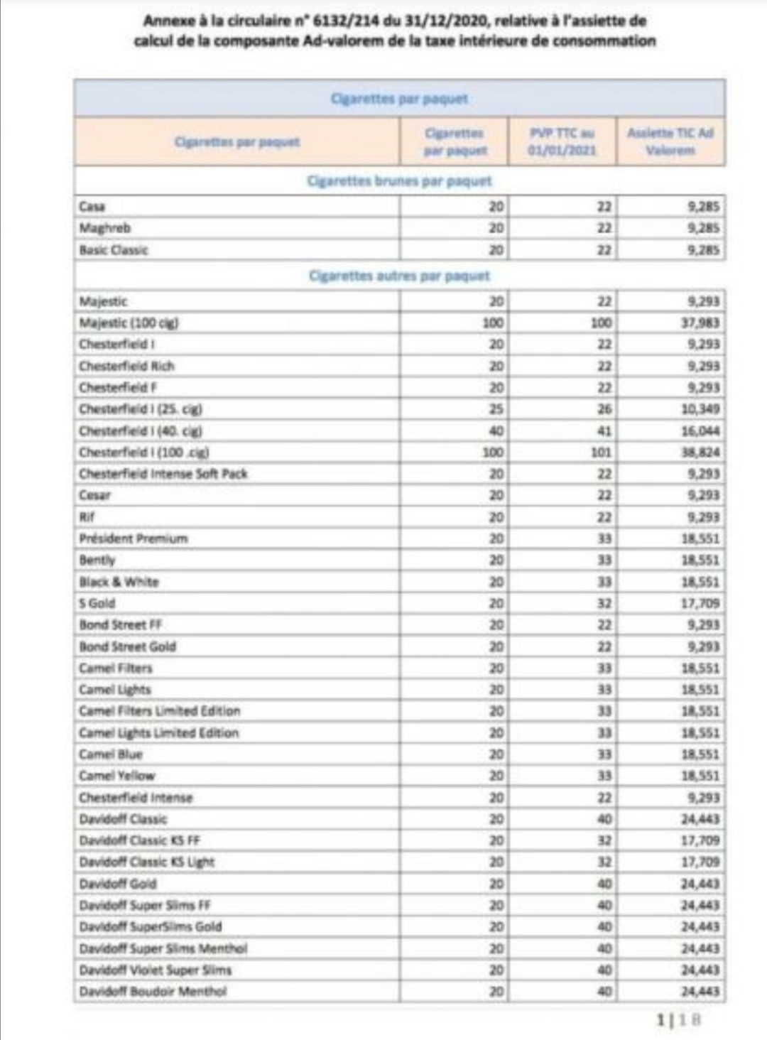 ووفق لائحة لإدارة الجمارك والضرائب غير المباشرة، على محلات بيع التبغ، المرفقة أسفله، دخلت الأسعار الجديدة للسجائر، حيز التنفيذ.