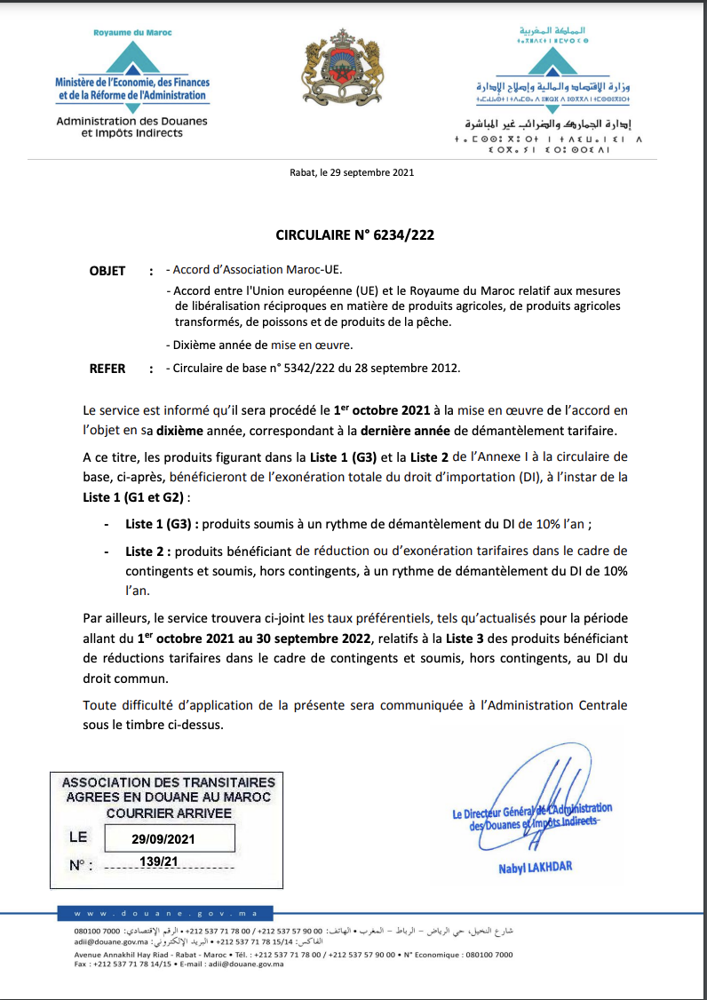 ويندرج هذا الإعفاء ضمن الفترة السنة العاشرة والأخيرة، طبقا لاتفاق الشراكة بين المغرب والاتحاد الأوروبي، حيث تهم التدابير الجديدة الشق المتصل بالتحرير المتبادل في مجال المنتجات الفلاحية والمنتجات الفلاحية المحولة والأسماك ومنتجات الصيد.