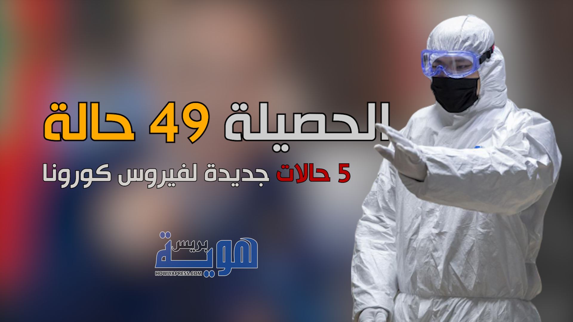 أخبرت وزارة الصحة الرأي العام أنه تم ليلة أمس الثلاثاء الأربعاء وإلى غاية التاسعة والنصف صباحا من يومه الأربعاء 18 مارس 2020، تسجيلخمس (5) حالات إصابة جديدة مؤكدة بفيروس كورونا المستجد، تم تأكيدها مخبريا بمعهد باستورالمغرب والمختبر الوطني للأنفلونزا والفيروسات التنفسية بالمعهد الوطني للصحة بالرباط، ليكون بذلك العدد الإجمالي للحالات المؤكدة إصابتها بمرض كوفيد-19 هو 49 حالة ببلادنا إلى حدود صدور هذا البلاغ.