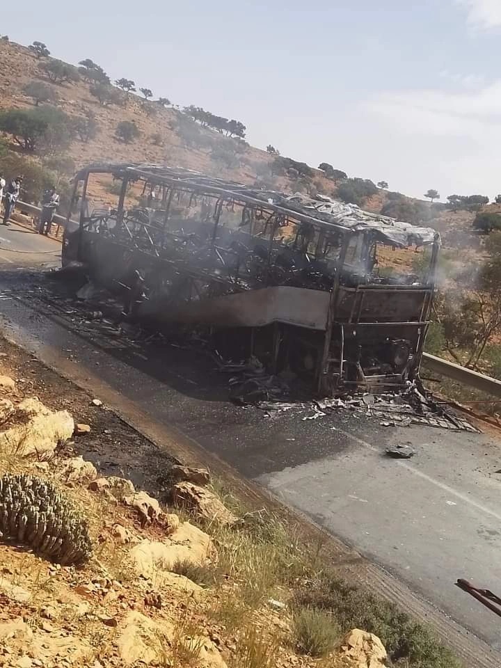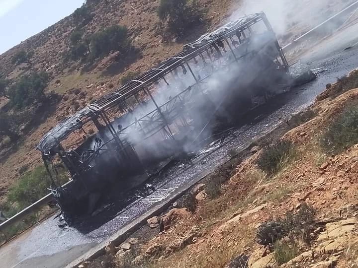 تسبب حريق مهول شب بمحرك حافلة لنقل المسافرين بمنعرجات طريق بويزكارن الرابط بين كلميم وتزنيت، في تحويل هذه الأخيرة إلى هيكل حديدي بعدما أتت النيران عليها بالكامل.