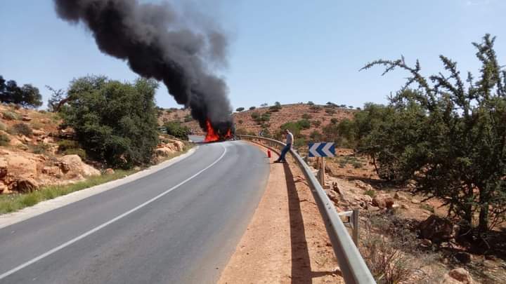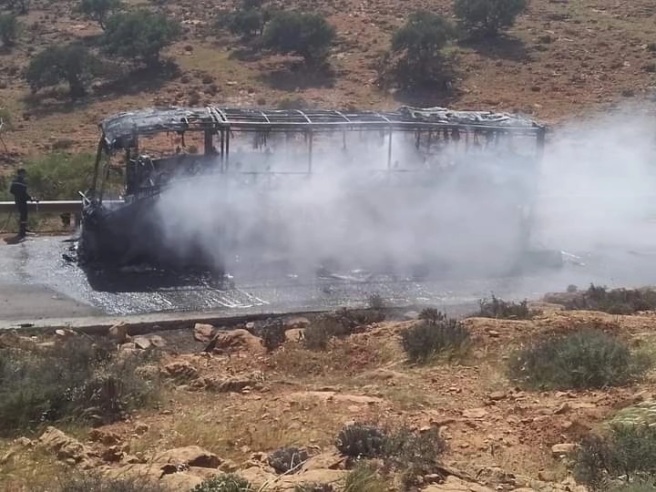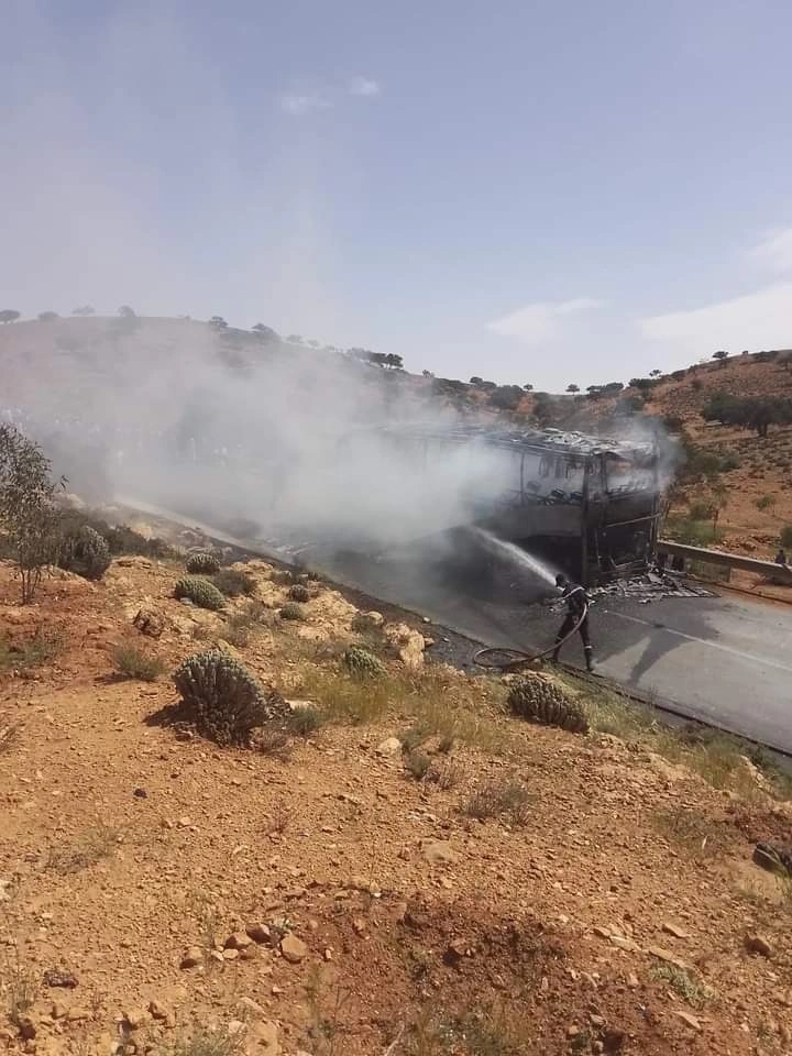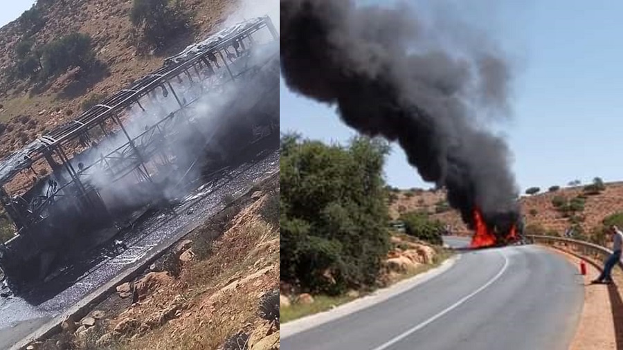 النيران تلتهم حافلة لنقل المسافرين بمنعرجات طريق بويزكارن (صور)