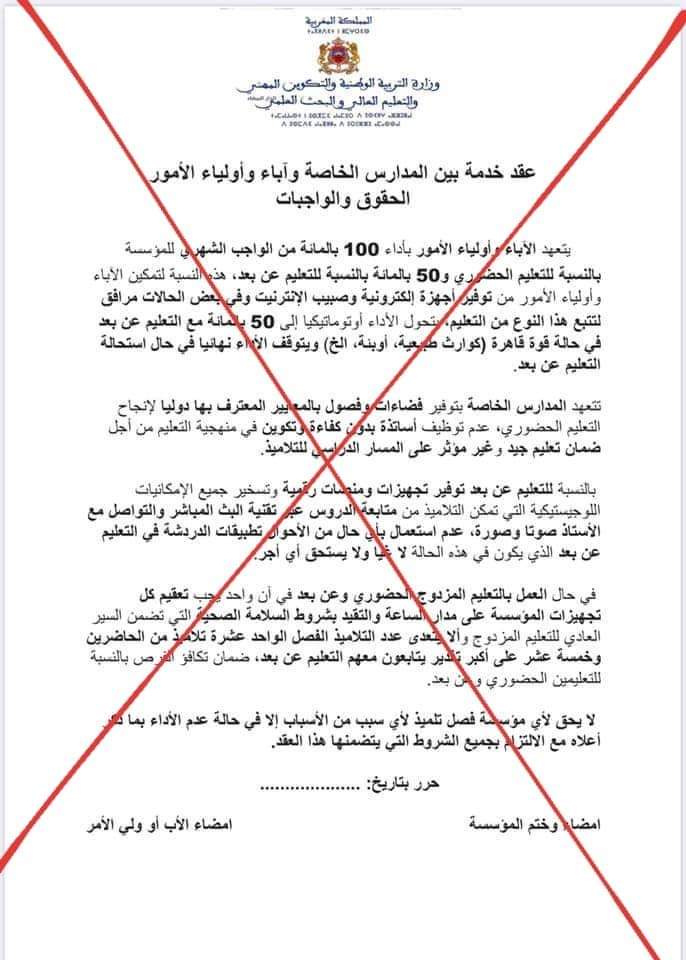 إثر تداول بعض رواد وسائل التواصل الاجتماعي لوثيقة على أنها صادرة عن وزارة التربية الوطنية والتكوين المهني والتعليم العالي والبحث العلمي، قال وزير التعليم، سعيد أمزازي، تنويرا منها للرأي العام الوطني، فإن الوزارة تؤكد على أن هذه الوثيقة “مفبركة“.
