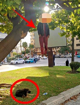 كما تظهر الصورة المتداولة في مشهد أثر في الجميع هو بقاء كلب الضحية جالسا قرب جثة صاحبه إلى أن تم نقلها إلى مستودع الأموات.