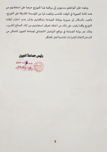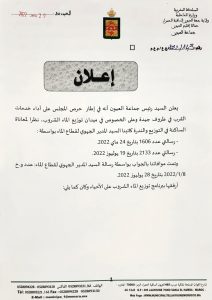 هذا ونشر الموقع الرسمي لجماعة العيون، إعلانا يوضح من خلاله الرسائل التي وجهها رئيس الجماعة إلى المسؤول الجهوي عن قطاع الماء بجهة العيون الساقية الحمراء.