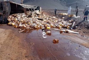 تداول عدد من النشطاء الحقوقيين بجبهة البوليساريو، حادث انقلاب شاحنة في الطريق إلى موريتانيا، محملة بكميات كبيرة من مادة الزيت كانت موجهة لساكنة مخيمات تندوف.