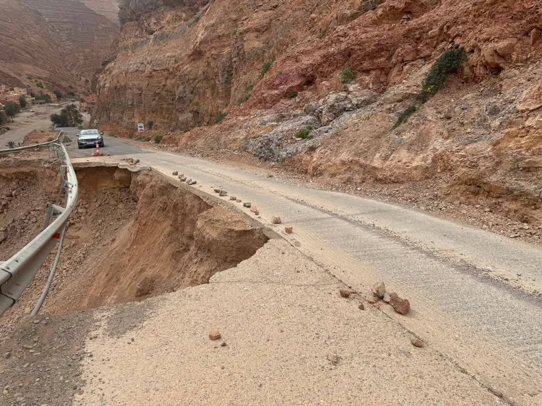 أظهرت صور منشورة، تعرض الطريق الجهوية 107 لإنهيار شبه كلي على مستوى بداية منعرجات أسالم بدوار إكمير سموكن بجماعة تمنارت بإقليم طاطا.