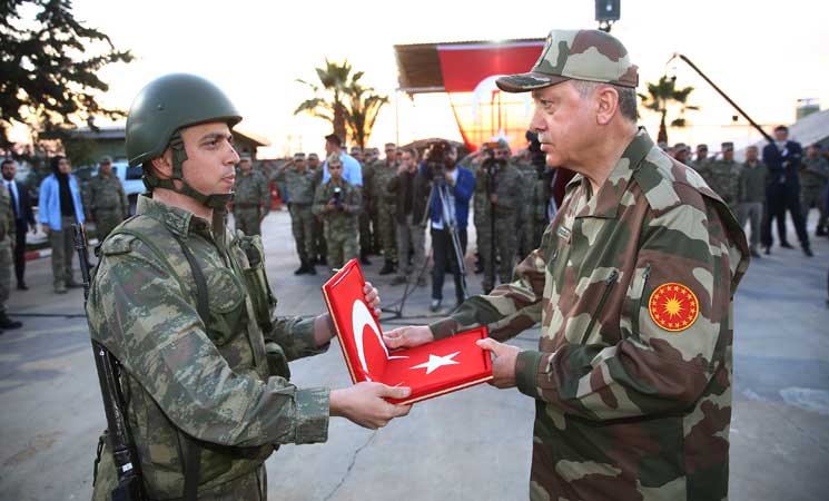 وأعلن الرئيس التركي في كلمة أمام الجنود في المخفر، أن القوات المشاركة في عملية “غصن الزيتون” تمكنت من تحييد 3852 مسلحا في منطقة عفرين.