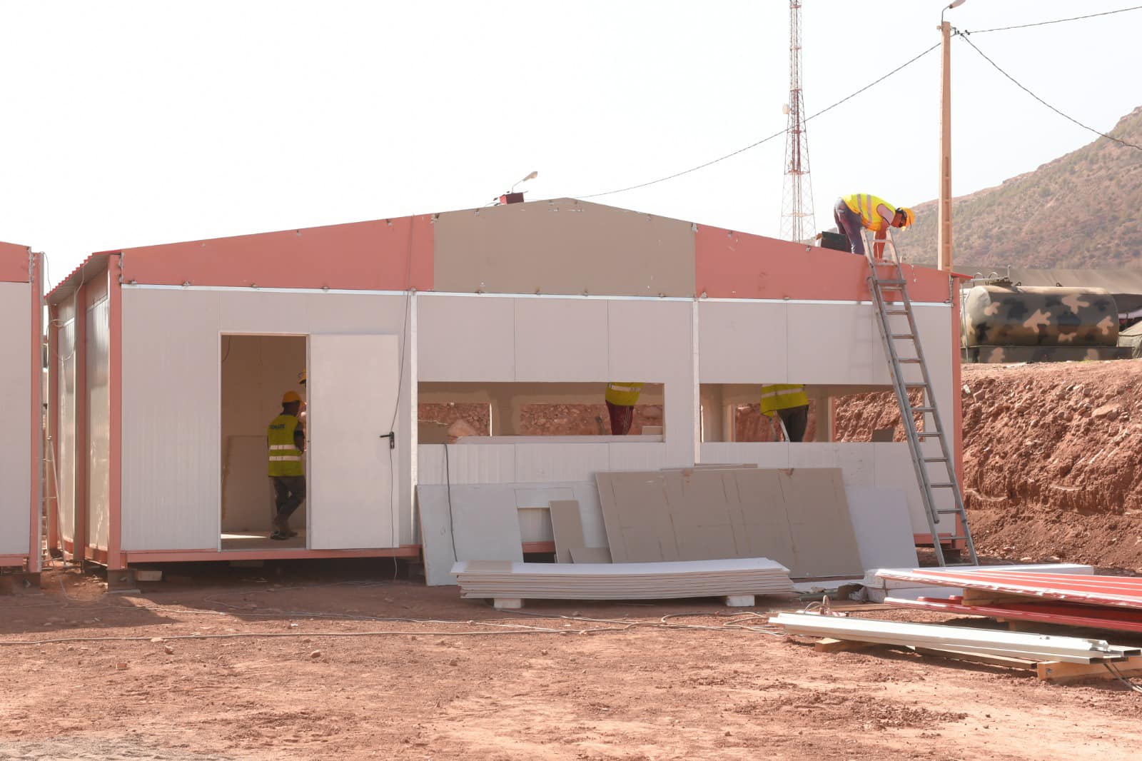 ويهدف هذا المشروع إلى تعويض الأقسام المتضررة بإنشاء وحدات دراسية مجهزة بأقسام تبلغ مساحتها 54 م2، ومكاتب تبلغ مساحتها 9 م2، وكذا مرافق صحية وإقامة إضافية تصل مساحتها إلى 12 م2. وستتركز هذه الوحدات في مرحلة أولى في كل من أقاليم شيشاوة والحوز وتارودانت، وذلك بإنشاء 500 وحداة دراسية مجهزة من أجل تلبية الحاجيات الملحة لساكنة الأقاليم المتضررة، سيتم إنجازها خلال شهرين.