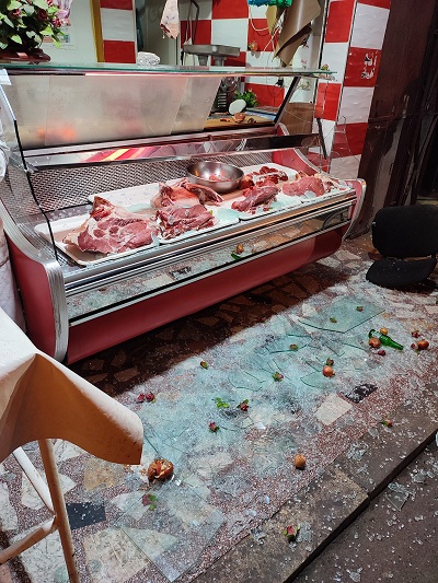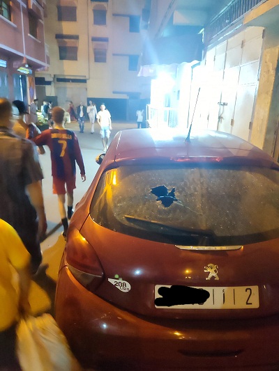 فقد توصلت “هوية بريس” بمجموعة صور للتخريب الذي قاموا به على مستوى منطقة بشنيخة، حيث كسروا زجاج عدد من السيارات، ورموا بالحجارة عددا من المحلات، منها محل للجزارة ومحل لبيع المكسرات.