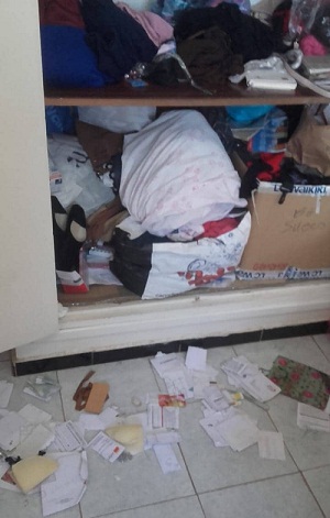 مع بعثرة الملابس بشكل كبير بحثا عن المزيد من المسروقات الثمينة.