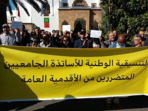 وألقى المنسق الوطني كلمة باسم التنسيقية ذكر فيها بالمراحل المتقدمة التي عرفها هدا الملف في عهد الوزير السابق مرورا بالحوار الاخير الدي تم بين الوزارة الوصية والمكتب الوطني النقابة الوطنية للتعليم العالي، حيث لاحظ الأساتذة المتضررون، محاولة الوزارة التنصل من المراحل المتقدمة في تسوية هذا الملف في الولاية السابقة”.