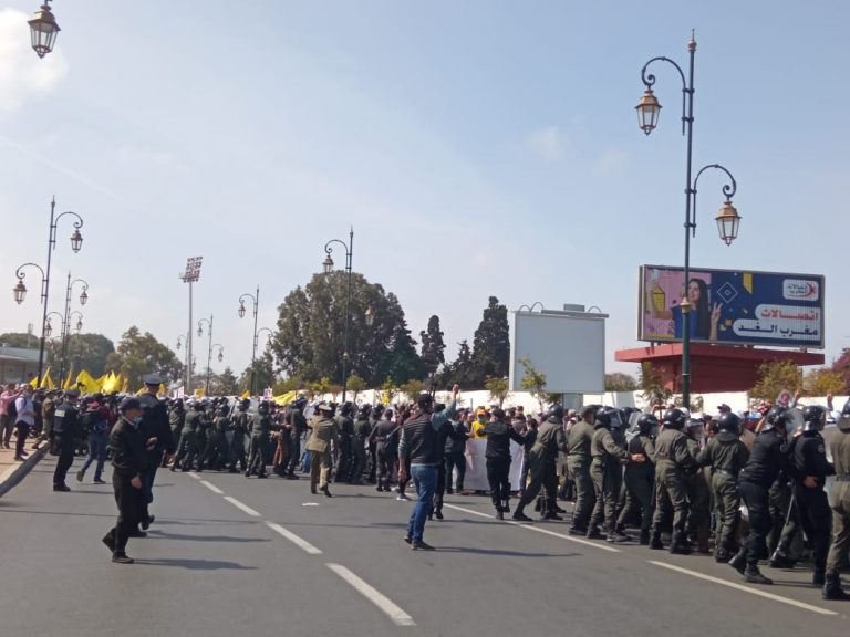 شهدت شوارع باب الرواح أمام مقر وزارة التربية الوطنية بالعاصمة الرباط، زوال اليوم الاثنين 5 أبريل الجاري، تدخلا أمنيا للقوات العمومية لتفريق الوقفة الاحتجاجية التي شارك فيها عشرات الأساتذة من النقابات والتنسيقيات التعليمية.