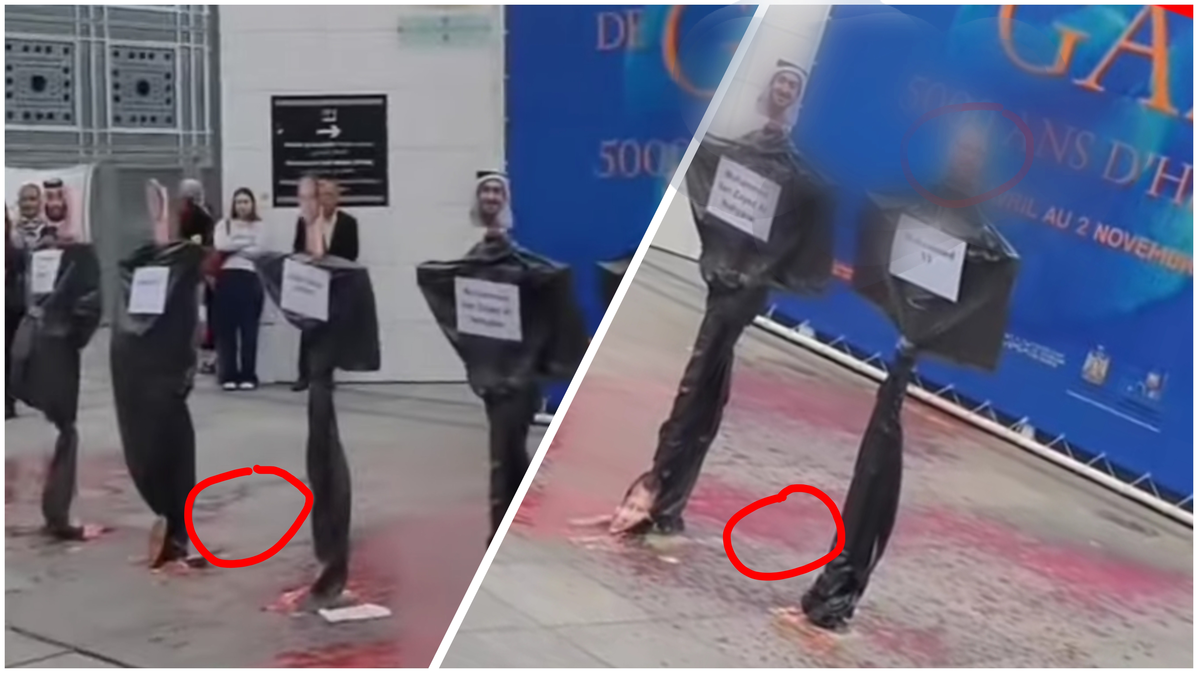 وأظهر فيديو مصور إقدام هؤلاء على تلطيخ و إحراق صور عدد من زعماء البلدان العربية، وضمنهم ملك البلاد.