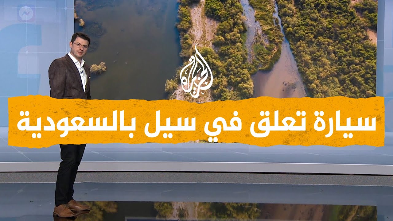 بالفيديو.. في السعودية قائد مركبة حاول عبور مجرى سيل فعلقت سيارته