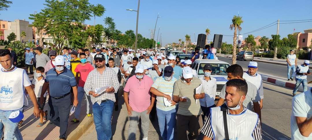 أظهرت صور ومقاطع فيديو، مئات المواطنين من أنصار القيادي بحزب الأصالة والمعاصرة هشام المهاجري، في حملتهم الانتخابية، دون تباعد وغالبيتهم بدون كمامات.