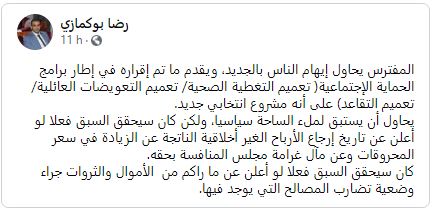 وقال بوكمازي، في منشور له على الفايسبوك، أن “أخنوش يحاول إيهام الناس بالجديد، ويقدم ما تم إقراره في إطار برامج الحماية الإجتماعية (تعميم التغطية الصحية/ تعميم التعويضات العائلية/ تعميم التقاعد) على أنه مشروع انتخابي جديد”.