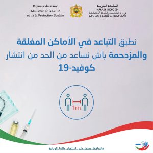 ودعت وزارة الصحة، عبر إعلان لها، إلى “تطبيق التباعد في الأماكن المغلقة والمزدحمة، للمساعدة من الحد من انتشار كوفيد 19″، تحت شعار “لنحافظ جميعا على استقرار حالتنا الوبائية”.