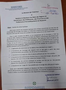 دعا وزير عبد الوافي لفتيت، وزير الداخلية، في دورية عاجلة وجهها إلى ولاة الجهات وعمال الأقاليم، إلى ضرورة تنزيل إجراءات الحفاظ على الثروة المائية وحمايتها من الضياع عن طريق منع الماء الشروب في غسل السيارات وسقي المساحات الخضراء.