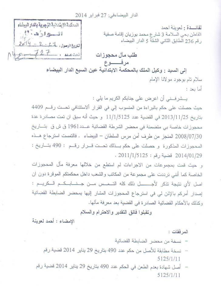 تقدم المواطن (أ.ع) بطلب استرجاع محجوزات، ضمنها سيارة، إلى وكيل الملك بالمحكمة الابتدائية عين السبع الدار البيضاء، بعد معاناته مع أزمات مالية وديون متراكمة عليه عند المصالح الضريبية.