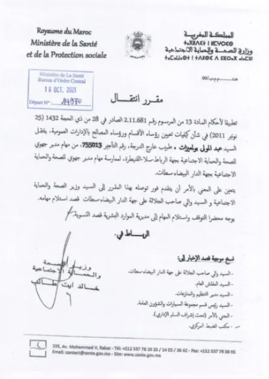 أصدر وزير الصحة خالد آيت الطالب قرارا بإعفاء نبيلة الرميلي وزيرة الصحة المعفاة من مهامها كمديرة للصحة بجهة الدار البيضاء السطات.