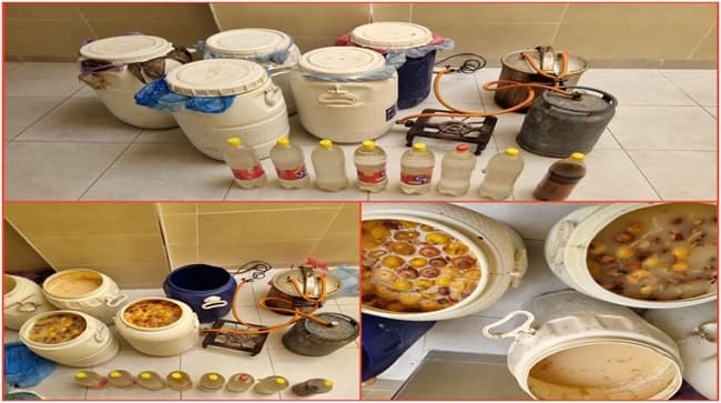 وجرى توقيف المشتبه فيه، على مستوى الحي الحسني بن دباب، بعد مداهمة ناجحة لوكره المعد لبيع وتقطير مسكر ماء الحياة، حيث أسفرت عملية التفتيش المنجزة داخله عن حجز 350 لتر من مسكر ماء الحياة، و 20 لتر من نفس المادة معبأة داخل قارورات بلاستيكية معدة للبيع، بالإضافة إلى براميل تحتوي على التركيبة المستعملة في إعداد مسكر ماء الحياة، علاوة على مواد ومعدات تستعمل في تحضير المادة المذكورة.