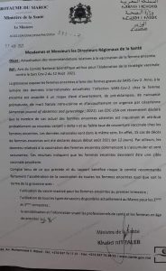 وفي هذا الصدد، أصدر وزير الصحة، خالد ايت الطالب، تعليماته عبر دورية وزاريو، لكل مسؤولي الوزارة والمستشفيات يأمر فيها بتسريع حملة التلقيح عند جميع النساء الحوامل انطلاقا من بدايته وأيضا الراغبات في الحمل.