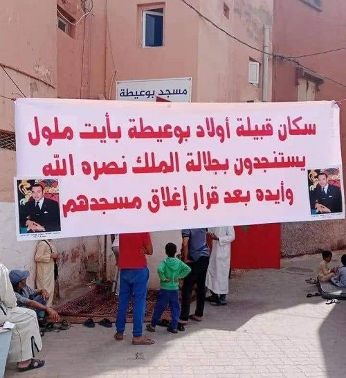 مصلو المسجد قرار الإغلاق غير المبرر، ووصفوه بالجائر، كما رفعوا لافتات تطالب بتدخل الملك لإعادة فتحه، وجاء في نص إحدى اللافتات “سكان قبيلة أولاد بوعيطة بأيت ملول يستنجدون بجلالة الملك نضره الله وأيده بعد قرار إغلاق مسجدهم“.