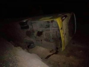 وأصيب عدد من الأشخاص بينهم نساء بعد انقلاب حافلة لنقل المسافرين.