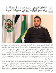 كما تعمّد ذات الناشط، الكذب على القيادة الفلسطينية، والشعب الفلسطيني، بخصوص احتضانها لانفصاليي البوليساريو على الأراضي الفلسطينية، وهذا ما نفاه عزيز الهناوي، الكاتب العام للمرصد المغربي لمناهضة التطبيع، بتأكيده على “أن وزارة الداخلية هناك في غزة و السفارة الفلسطينية بالمغرب هنا، قد عبّرا في موقف رسمي بأنه لا ترخيص هناك لانفصاليي البوليساريو، بل هناك شخص واحد مرتزق يرمي بالكبسولات الإعلامية الرقمية من غزة و يسمى “محمد أحمد ماضي” ومعه إبنته المرتزقة بالعلم الصحراوي الوهمي”.