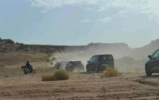 وتظهر الصور مجموعة من السيارات على طريق ترابي غير معبد، في شكل قوافل للوصول إلى الجماعات والقرى التي ينحدرون منها رغم ما يشكله ذلك من خطر على حياتهم.