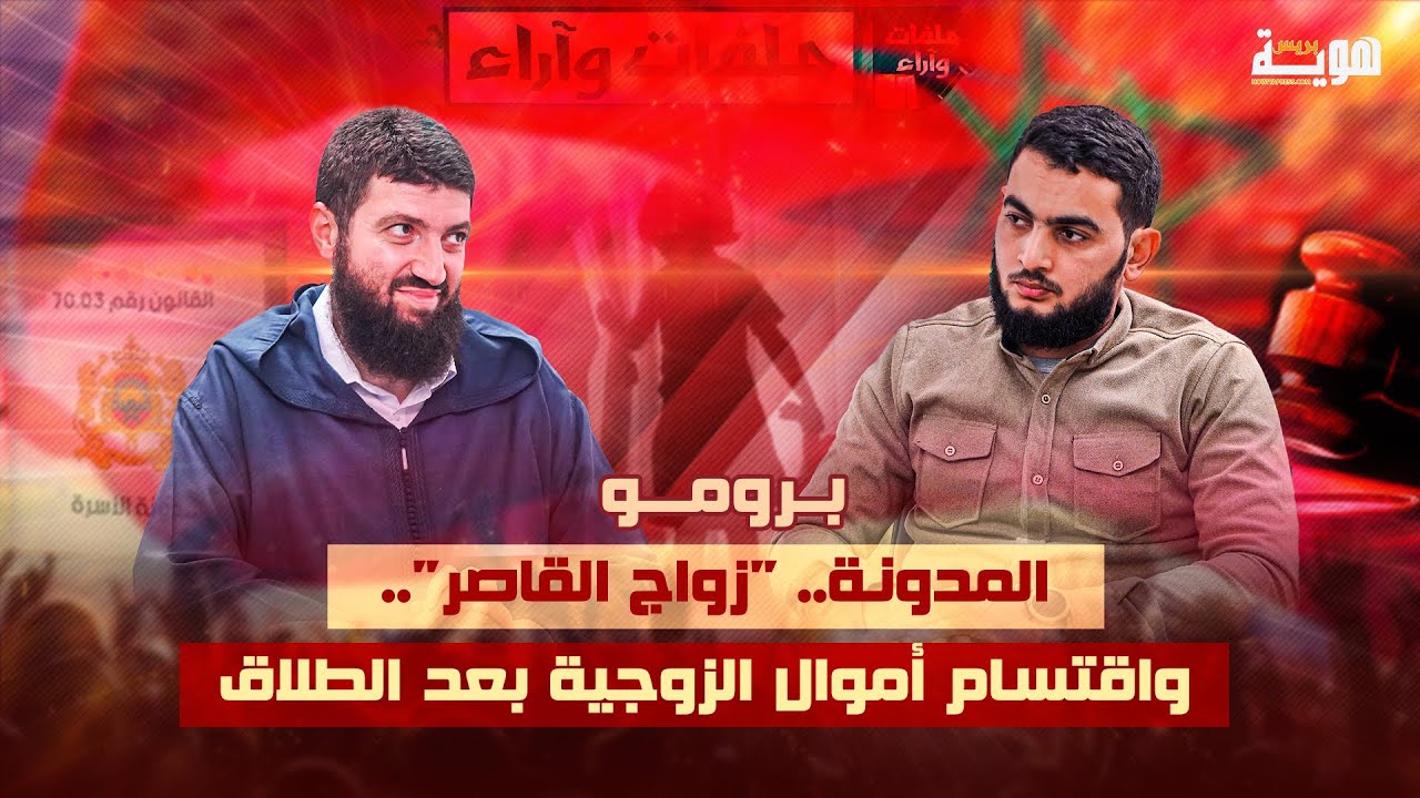 شاهد.. برومـو: المدونة .. “زواج القاصـ ـر” .. واقتسام أموال الزوجية بعد الطلاق (ملفات وآراء) (هوية بريس) 22 نوفمبر 2023 20:27