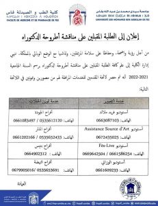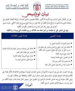 أصدرت كلية الطب والصيدلة، التابعة لجامعة سيدي محمد بن عبد الله بفاس، إعلانا “تنهي فيه إلى علم كافة الطلبة المقبلين على مناقشة أطروحة الدكتوراه، برسم السنة الجامعية 2021/ 2022، أنه تم حصر لائحة المقدمين للخدمات المرافقة لهم من مصورين وممونين” في لائحة ضمّنتها العمادة إعلانها، تحت عنوانين عريضين: “خدمة التصوير”، “خدمة تموين الحفلات”.