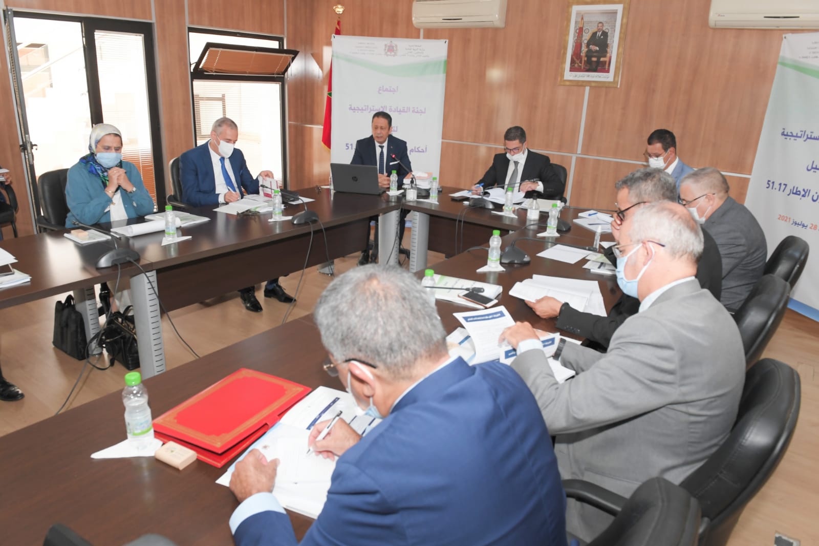 ترأس السيد سعيد أمزازي، وزير التربية الوطنية والتكوين المهني والتعليم العالي والبحث العلمي، اليوم، بمركز التكوينات والملتقيات الوطنية بالرباط، الاجتماع الثاني للجنة القيادة الاستراتيجية لتفعيل أحكام القانون الإطار رقم 51.17 المتعلق بمنظومة التربية والتكوين والبحث العلمي، وذلك بحضور كل من الكاتب العام لقطاع التربية الوطنية والمفتشين العامين للوزارة والمديرين المركزيين ومشاركة مديرة ومديري الأكاديميات الجهوية للتربية والتكوين حضوريا ومدراء مراكز التكوين والمديرين الإقليميين، عبر تقنية المناظرة المرئية، خصص لتدارس والمصادقة على الحصيلة المرحلية لتنزيل مشاريع تفعيل أحكام القانون الإطار51.17 المتعلق بمنظومة التربية والتكوين والبحث العلمي.