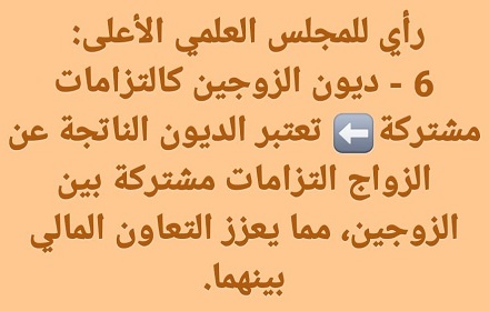 اعتبار ديون الزوجين التزامات مشتركة بشكل مطلق ليس له #أساس_شرعي واضح، بل يتعارض مع المبادئ الشرعية التالية:
